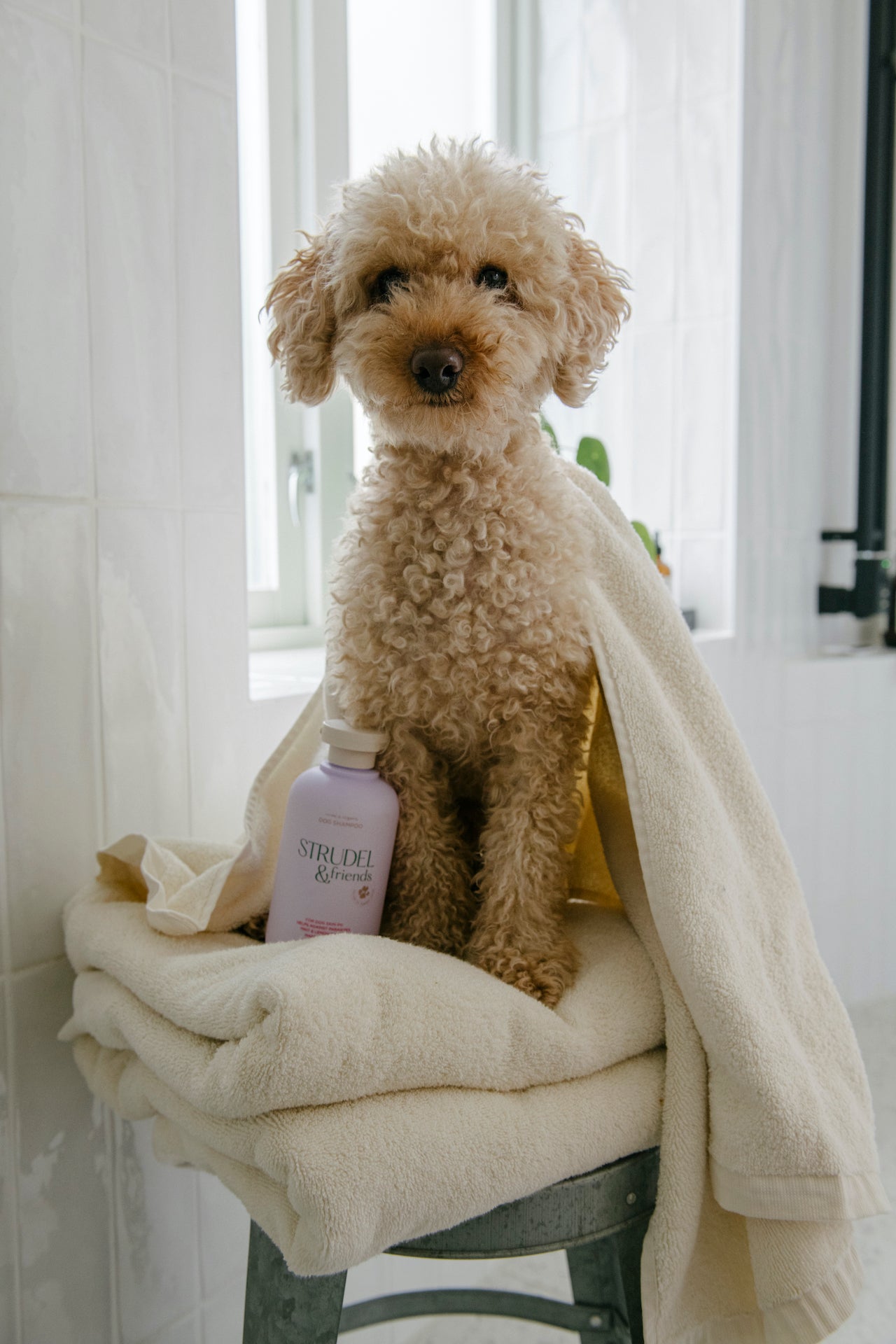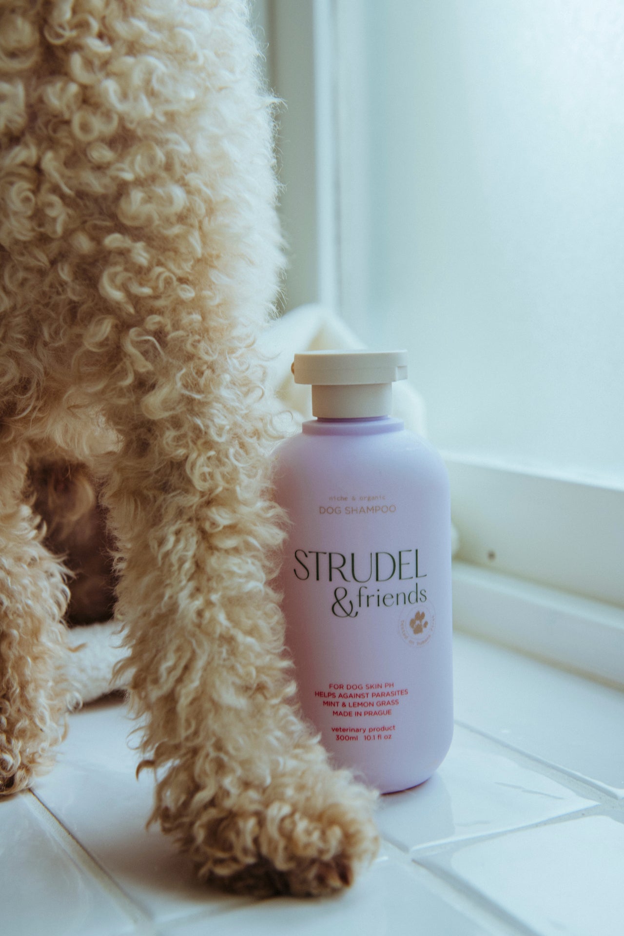 STRUDEL & FRIENDS shampoo is a completely natural shampoo for dogs containing first-class ingredients such as silk extract, rice protein, nimby oil, fucogel and panthenol, which gently clean and nourish the coat.